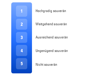 Das Ergebnis wird in Form eines Scores zwischen 1 und 5 dargestellt. Dabei steht 1 für "hochgradig souverän" und 5 für "nicht souverän"